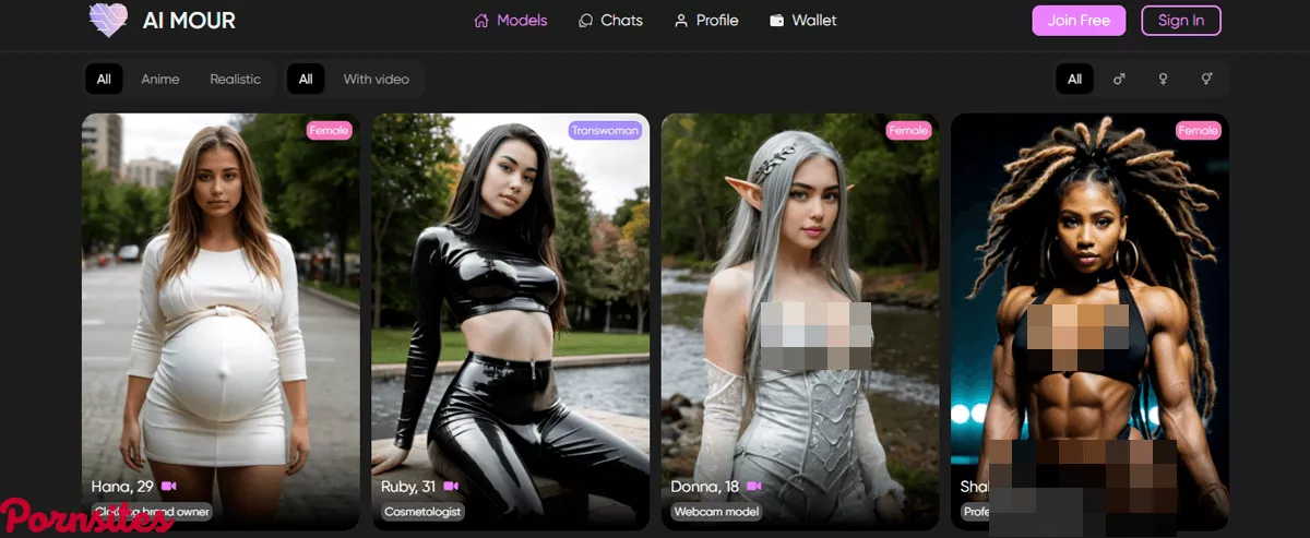 - Variety of Characters: One-size-doesn't-fit-all, and AIMOUR seems to acknowledge this fact. The platform offers a wide range of characters to cater to diverse preferences and whims of its users. This is not a feature that many adult websites can boast about.