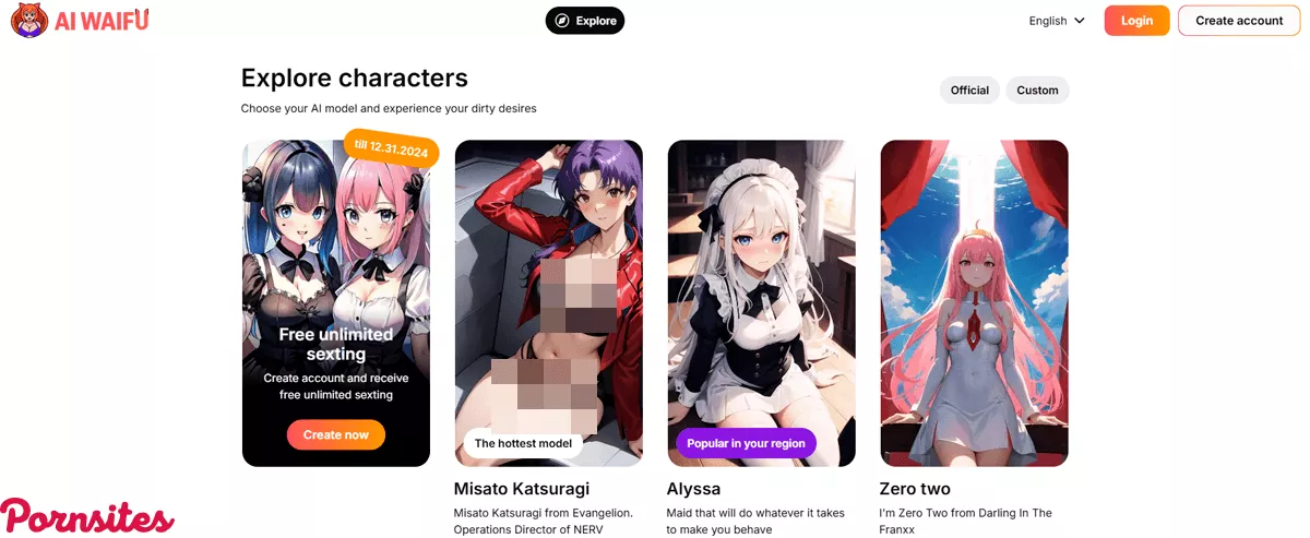Typically, when we think of adult websites, we envision a vast library of prerecorded videos or endless lists of model profiles. But AiWaifu is anything but typical. So, what sets it apart from the pack? The answer is simple yet revolutionary: AI technology. AiWaifu is an AI adult chat platform that uses hentai chatbots to breathe life into your personal erotic fantasies. But this isn't just about scripting a quick sexting session; AiWaifu allows you to boldly go where no one has gone before (at least when it comes to adult entertainment). And that's not all — until the end of 2024, AiWaifu is offering free unlimited sexting, a tantalizing proposition that is almost too good to resist. This perk is set to expand the horizons of erotic exploration beyond our wildest dreams. But rest assured, all characters are of legal age and consent to the interactions. With a variety of popular character options, an authentic and steamy chat experience is assured. As an adult site industry leader, I'd like to share a quote that I firmly believe in, "Variety is the spice of life, and AiWaifu is spices up your intimate moments like no other."Character Creation
