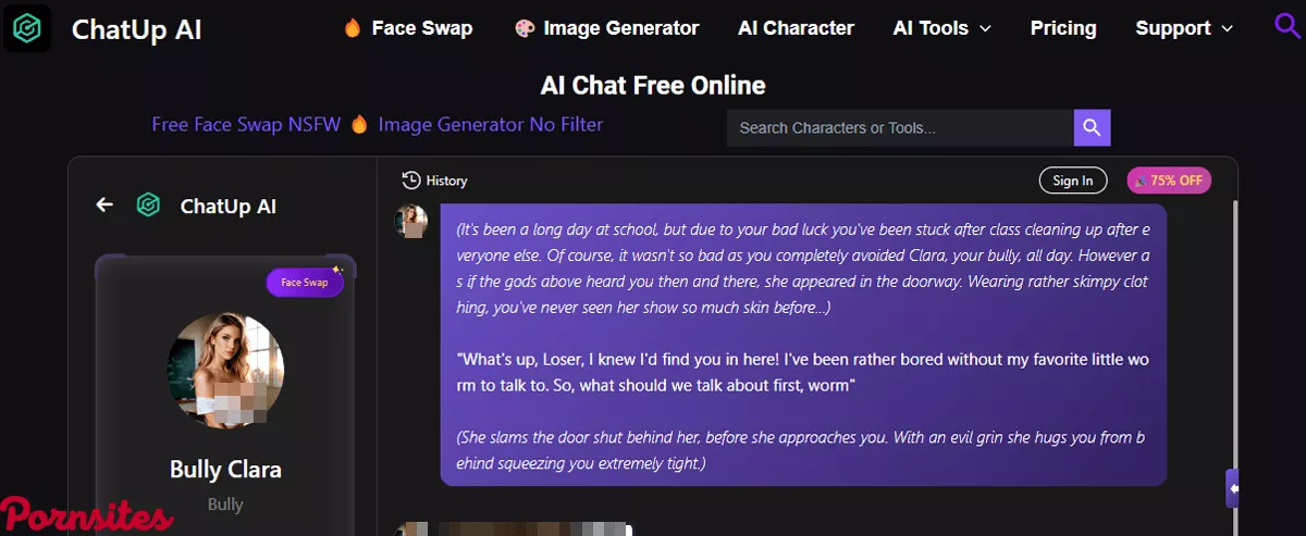 - Revolutionary Features: ChatUp AI is not just about chatting. Fancy AI that generates images based on your dirty talk? Or perhaps face swapping tech that brings your favorite silver screen star to your private chat? Yep, you've got it here!