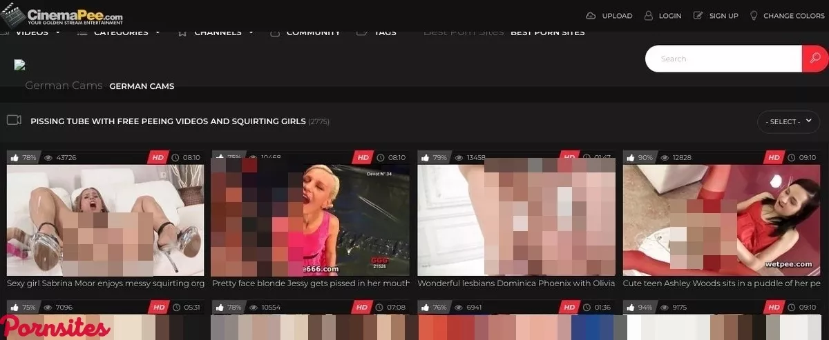 There is a single thing that all of you may find fascinating. You see, the creation date for CinemaPee.com is on the 21st of August, in the year 2002. That's a long time for a website, that's for sure. This site is old enough to buy itself a drink, that's how ancient it is. And to survive on the internet in all of its tough times is not easy. So, we commend them for doing that, that's for sure. But, we still need to check out all their elements, including the design, the controls, and the content that they post. Of course, in that, we include how many ads do they have as well. Making money is incredible, and everyone should be full of cash. But, some sites simply don't have that healthy boundary when it comes to advertisements and promotions. So, follow us into these next few paragraphs while we check it all out. CinemaPee has that classic free porn website design that all other places have too. Their whole site is mostly black, with some options and elements being red, and that's okay. To be frank, it's a bit of a cliche, and we're sick of seeing it. But, if it works, don't fix it, and that's the primary key here. Their logo is their name, along with that square device that people click when they start recording on movie sets. We have no idea what that's called, but who cares anyway. So, their whole design is simplistic, and we can appreciate that, weirdly. The navigation system is on the top of their website, and the content is in the middle. And in the end, you have some ads on the bottom. Aside from that, all legal options (no one reads them that's for sure) are at the bottom of the site. So, the design looks cheap overall, which is what we don't like, but that's only the artistic side. The more positive thing is the fact that it has an excellent organization, which is essential for a successful website. The navigation system of Cinema Pee is something that we enjoy immensely. That's because of a few reasons. First of all, we already told you how it's beautiful and how the organization is excellent. Next up, they don't bore you with all those shitty things that other websites tend to use. Instead, here, you cut the crap and get right to the point. So, you have videos, and there are a few different kinds of them. For example, you have the longest, top-rated, most discussed, and all that classic stuff. After that, you get the categories, as well as channels that post here. And the community, and in the end, the tags too. These buttons are all super useful, helpful, and will benefit the users. Aside from all of this, at the top, you have the standard login/create account buttons. And that comes with an upload option too. Apart from that, you can also switch colors. You can either use the black 'night mode,' or you can switch to the white one too. The white color will burn your eyes out, and that's just a little warning.Content of the website