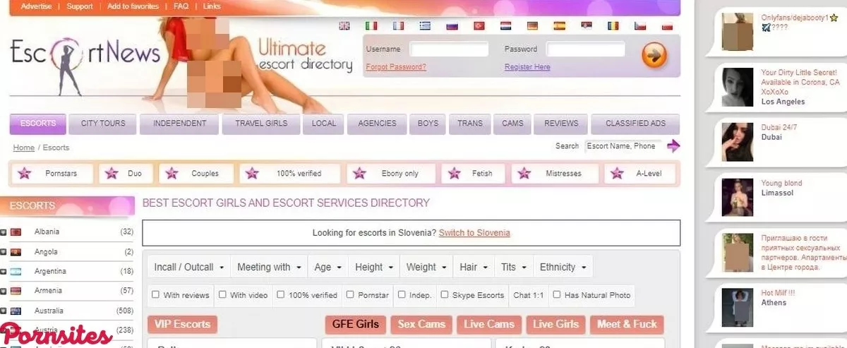 For the person that wants to jump straight into the action and begin browsing the escorts on Escort News, they can do so by first looking at the navigation bar at the top of the page. All they have to do is keep an eye out for the purple buttons. Viewers will notice that they can choose to look at escorts that are only on city tours. Likewise, visitors can look at escorts by agency escorts, independent agencies, travel girls, new arrivals, and more. Those that are new to browsing for escorts will want to select the escorts tab at the top of the page. There, they can begin to browse escorts by country via the sidebar (more on the countries later) or merely scroll down and see the latest escorts to post an ad. It's worth exploring and looking at how beautiful the escorts are alone (even if they are not in one's general area), so look around and see what beauties can be found!Look at only specialized escorts