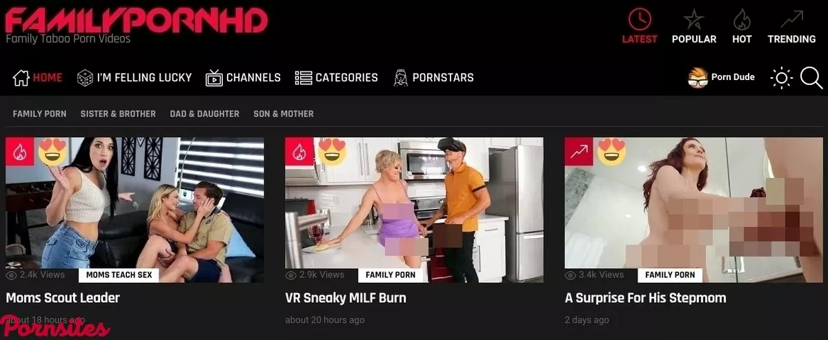 Like the name suggests, FamilyPorn is teeming with porn of the kinky variety, specializing in incest roleplay scenes. The site is playing on humanity’s biggest taboo, availing a tasty collection of scenarios featuring step-siblings, stepmothers, an