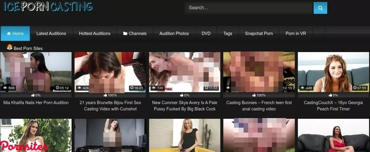 IcePornCasting is, like we said, a porn tube with the casting videos. It offers thousands of them and the numbers keep rising because everyone loves watching them. Since the site is very popular, its movies cover a wide range. From sexy first timers to the glorious pornstars, these videos will make you feel great and you will wank off to them easier than ever. The way to enjoy this site is to visit its Channels section. Of course, the movies are all mixed up on the homepage from all the channels here. But if you have one specific channel in mind, you will definitely find it here. There are many different channels that you can choose from like Czech Casting, Backroom Casting Couch, Fake Agent, HussiePass, She’s New, PornDudeCasting, and many others. This means that the site covers many premium sites in its database. You can expect many young girls getting fucked, MILFs, ebony pussies, etc. One channel that will especially catch your attention is Defloration TV. It is a channel that deals with real virgins and hot young babes who are experiencing sex for the very first time. They decided to do it in front of the cameras and with a stranger so this porn channel is one of the most interesting ones to watch.Site’s Design Is Like a Drop of Rain in a Storm