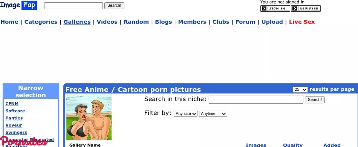 As we already said, the design of the ImageFap Cartoon is simple. You will don't need to deal with any special and complicated advanced filters. You will not have to lose your time searching. Right from the beginning, you're able to click and watch a certain cartoon gallery. The background of the site is white with blue features. This combination looks good and you can see everything clearly without any problem. On the left side of the site, you can see that ImageFap Cartoon has also other niches. Besides those niches, they also have a narrow selection. Narrow selection is something like categories. You will see many selections such as blonde, gangbang, interracial, creampie, and many other selections. At the top of the site, you're able to see different tabs such as a tab for videos, pictures, blogs, members, clubs, and even a tab for uploading! So you're able to upload your content to their page if you want. Of course, ImageFap Cartoon has a partnership with many other websites such as WankSpider, TNAFlix, EMPFlix, YoPlaza, and MovieFap. When you visit this website, you will see that this site is not something like today's pages.Partnership Sites on ImageFap Cartoon