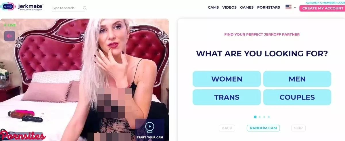 Jerkmate.com promises men that they will never have to jerk off alone ever again. That's a bold promise, and it's enough to make the curious check out the cam site. Opening in 2017, once viewers are on the page, they can fine-tune the type of model they want to view or jump straight into the action by signing up for a free account.