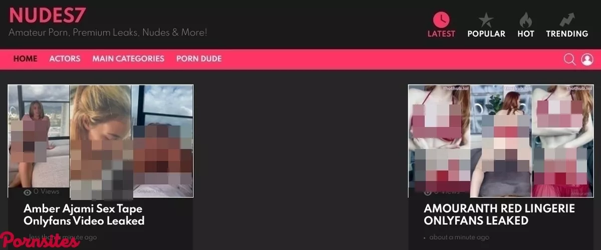 Anyone who enjoys seeing something new and interesting from the adult business will adore Nudes7 as a venue and chance. They provide a wide variety of good-quality, no-cost 1080p HD videos. Their layout and structure are straightforward, and it is simple to use. In addition, this page has fantastic mobile functionality, so you can always view it on your phone if you're away from your laptop. There are many movies from OnlyFans and material from the top and most well-known girls. The only drawback of Nudes7 is that there are adverts, but they are nothing compared to what you have to view!