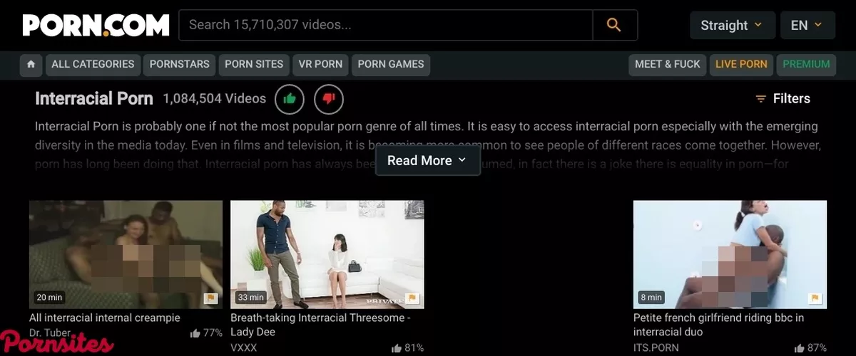Now, this is something I need to tell you, and in my opinion, it will make or break for you whether or not you want to use this site. Of course, Porn.com works very specifically, but if you ask me, this is how all porn sites should work to make the most out of every site. You could have asked yourself how on earth Porn.com interracial have so much porn. Well, that has a very simple answer. You see, Porn.com works in a way that they host porn from different websites and just put some tags behind those videos so you can easily find them. So, you will find porn from all kinds of sites on Porn.com, and it will be one amazing ride. So, get ready to please yourself and make something happen whenever you jerk off because you will be in for a wild ride from all the amazing content this site provides. And there you have it. It's very simple, and that is why Porn.com interracial has so much content and how they manage to build up so many videos over the years that they have been online. So, don't waste your time anymore on different sites, always going back and forth to try and find the perfect video to jerk off. Everything you need is right here, just waiting for you.Final Thoughts on Porn.com Interracial