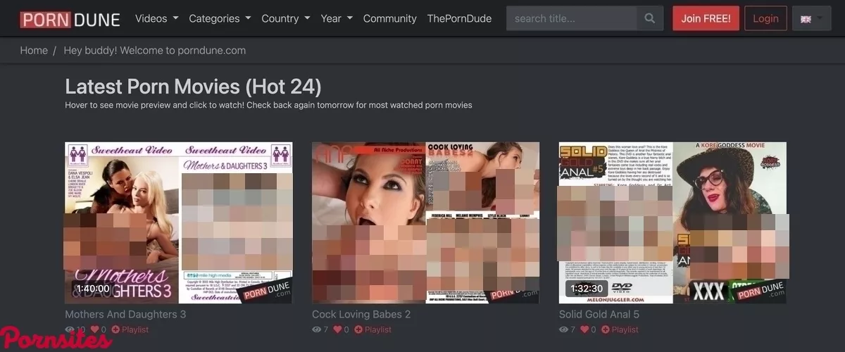Porn Dune contains porn videos that have only been released this year, despite the website's dated appearance. That certainly says a lot for an intro. Most of the full-length pornographic films on this website are in English, but there are also plenty in German, Italian, French, Spanish, and Swedish. You are aware that our list also includes many additional free pornographic websites. In addition to having websites similar to PornDune, where you can watch porn movies for your adult entertainment requirements, we also offer websites for your quickie needs. However, as PornDune is a free pornographic website, you can't truly expect it to be flawless or provide an identical experience to that of paid websites. PornDune needs to know what causes the 1 to 1.5 million unique visitors each month, but not more or fewer than the site experiences.The Content on PornDune