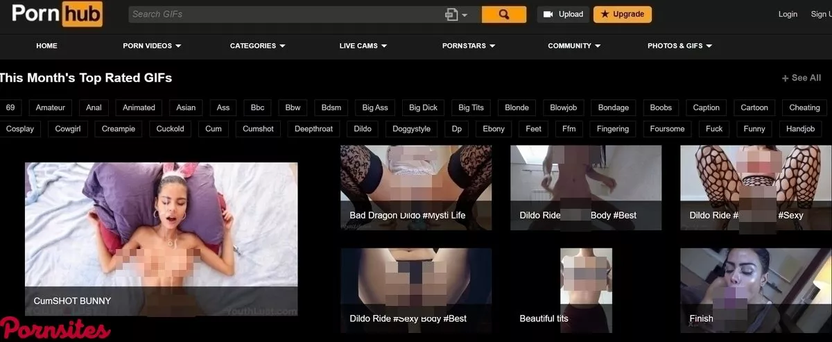 Maybe you have seen the little intro and brand stamp that Porn Hub puts before any of its videos created and uploaded by amateur users of the site. You know, the one that lets you know that the video you are about to watch was produced by one of the many, many members of its enormous community? This enabling and incentivizing of users to create and upload their own pornographic content is one of the many ways in which Porn Hub has adapted to the changing pornographic landscape. Just as Facebook made everyone the stars of their own social lives, Porn Hub has made it possible for anyone to become a porn star. Users can even make a decent living by submitting content to Porn Hub – they allow members to accept tips, as well as to monetize their content however they see fit. The sky is truly the limit with this site. Porn Hub has liberated the adult entertainment industry – an industry that has always been structured in a sort of traditional trickle down model, wherein consumers simply paid an agreed upon amount of money in exchange for a product in the form of a porn film or a monthly membership to a website. The industry looks nothing like it did 20 years ago. And this is largely thanks to Porn Hub and sites like it offering hundreds of thousands of porn videos, absolutely free of charge … as well as making it easier than ever before for would-be porn stars to produce and share quality adult content of their own with the rest of the world. But creating amateur porn is not the only way in which Porn Hub inspires participation in its userbase. Members can also create and curate playlists of videos that they like (or videos that fit a certain theme), create Facebook style posts, like and comment on fellow users’ videos and photos, and reach out to other members through direct messages. Essentially, Porn Hub is several sites in one. It is a huge and constantly growing archive of professional and amateur porn videos, it is an enormous porn pics site, and it is an adults-only social network all rolled into one.Gifs Galore