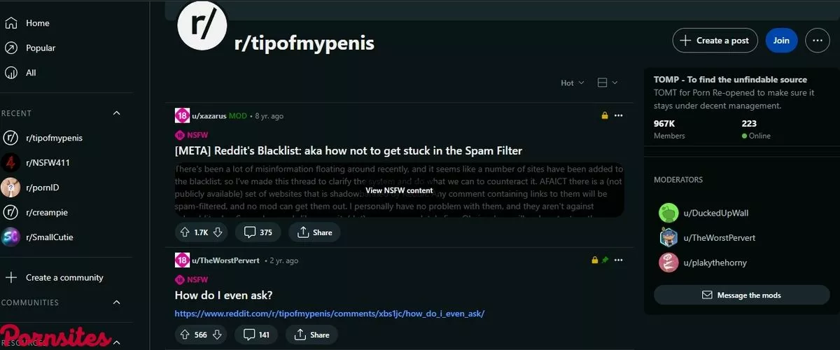 No, I'm not talking about a mad scientist's lab. We're carving up one of the juiciest, most engaged communities of adult content sleuths on the web. Everyone knows how redditors can get obsessed about things. And when it comes to the adult-film world, they're a resilient bunch with an insatiable thirst for knowledge. Reddit's 'Tip of My Penis' is a subreddit, a term used for smaller, targeted communities within Reddit, teeming with over 967k members. Now, that's a crowd! And believe me, being part of a community this massive involves a lot of mouths to feed and minds to satisfy. What's exceptional about this subreddit is the combined dedication of all these members towards a common goal: helping each other find what they've been tirelessly searching for. And oh boy, are they committed. It's like a wholesome potluck where everyone brings a dish—their knowledge of adult content—and shares it with others. Now imagine how much food…err, information is on that table. The interface is as straightforward as they come. From posting your queries to responding to an ongoing thread, everything is crystal clear. With a no-nonsense, inclusive, and easy-to-follow guidelines, Reddit Tip of My Penis caters to everyone—newbie or veteran. It's this intuitive, user-centric approach that adds another feather in its cap.- Looking for a specific scene? Post it.