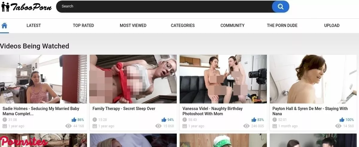 The first thing you will see when you visit Taboo Porn is the simplicity of the site! Yeah, just like many other porn tubes, this place offers nothing spectacular in terms of design and features on the site! Everything is clean and neat, all you need to have on one porn tube is here, and you will not have any issues surfing the site or finding the scene that will satisfy your urge for taboo porn action! The entire site is white, which is a bit storage, to be honest and I really expected to see a button for a dark theme, but there is none here! So, you will have to lower your screen lightning or lock your doors! Not a big issue indeed! So, the background is kinda white, it is not entirely white, more something like light gray color, but the thumbs are in the white borders, so yeah, a lot of white is the first thing you will see here! After that, you will notice a big and visible search field in the header! That field is dark and once you enter certain keywords in there, you will see a lot of search query results! The feature is implemented well and working fine, and having the fact that this place has a lot of videos, it is really useful! Under that search bar and the logo which is placed in the standard top-left corner, you will see a navigation bar that contains pretty much the standard setup when it comes to porn tubes: Home, Latest, Top Rated, Most Viewed, Categories, Community, and Upload! I am sure that you are familiar with all of these, the only thing that can be unknown here is an upload section! Of course, you are able to upload scenes to this porn tube, but in order to do so, you will have to create a free account! The process is fast and simple, so if you want to do this, be my guest!Thumbs are interactive and informative!