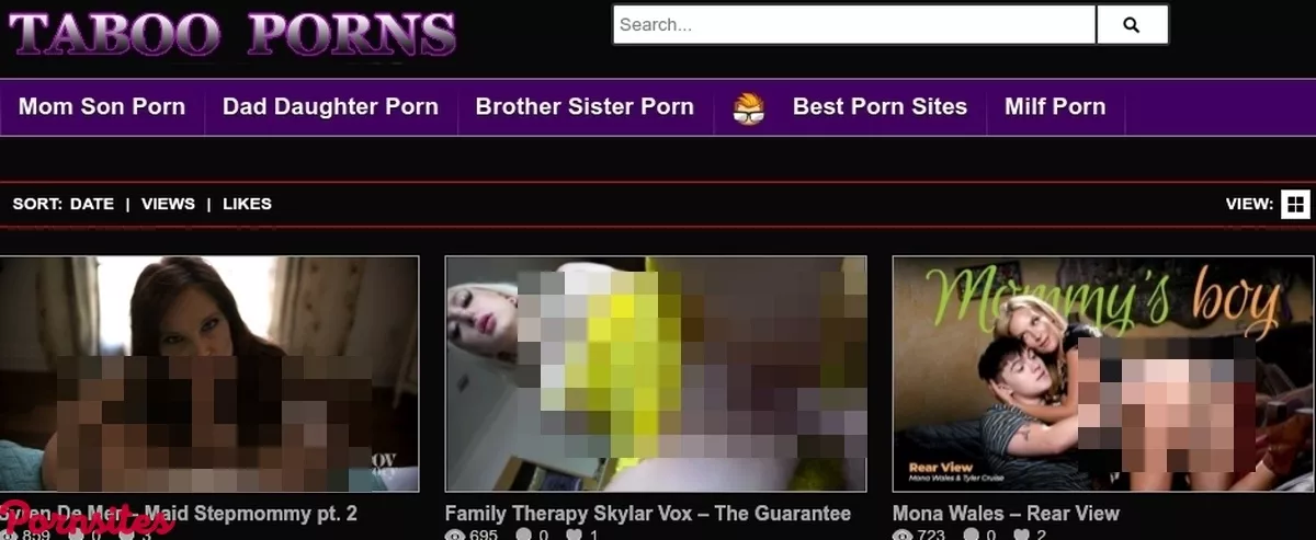 TabooPorns is home to a decent collection of exciting and controversial incest porn flicks featuring cock-hungry mommies and daughters eager to keep it in the family. This free porn site dives deep into the incest porn niche and offers a large number of full scenes with over 4500 scenes available for streaming. The videos pit stepfamily members in various compromising scenarios. They include blackmail getting caught masturbating or caught spying on mom, horny daughters sucking their dad’s cocks, and more. Some of the videos have a storyline while others get into the action without so much backstory. Videos on TabooPorns.com feature famous porn stars as well as amateur, all of whom are driven towards encompassing the viewer’s sexual fantasies with their onscreen antics. There’s something innately hot about taboo family porn, and the collection at TabooPorns should heighten the pleasure for many lovers of the niche. One important thing for users to note is these are not real family members romping away. They are professional actors who have been paid to bring out the family roleplay fantasy. Knowing the difference and not blurring the lines is key to enjoying the collection on this site. Time to see if they deliver on their promise.The allure of incest porn