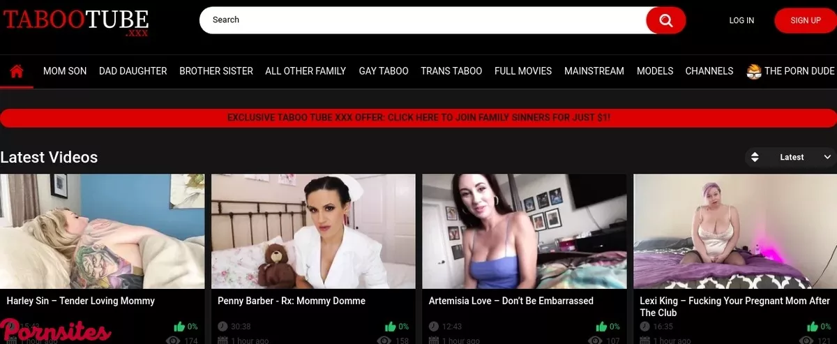 At the time of writing this, there are 7691 videos covering the incest niche. The thumbnails on the homepage show the number of views, length, and rating, although the ratings are a bit suspect. Most videos either have a 0% or 100% rating, which is not practical. Users will be pleased to note that despite the videos being hosted outside TabooTube. There is an embedded video player that allows viewers to watch the videos without being directed to the hosting site. However, most of the videos are short flicks, and the users will have to visit the originals source of the video to watch it in its entirety. Needless to say, some of these sites may demand paid membership. Videos come from heavyweights like Brazzers, Virtual Taboo, Cum Again 4 Mommy, Family Therapy, and Filthy Family, Bratty Sis, Cock Ninja, Family Lust, Dad Crush, Kinky Family, Pure Taboo, and Perv Moms among many others. Also, the videos are only available for streaming with no options to download. Being a niche site, there is not too much variety. Still, users can expect the usual mom son hookups, daddy sleeping with his stepdaughter, and such scenarios. There is also an ‘All Other Family’ tab that has sex scenes featuring aunties, uncles, and cousins. With over 3,600 videos, the mom/son category has the most videos. Like mentioned, the scenes are mostly short, but there is a generous collection of full movies, the longest-running for over one and a half hours. Some of these are vintage videos that will please lovers of retro porn. Users will also love the option to filter the movies by quality. There are some videos with mediocre resolutions, but only a few can be termed unwatchable.Check out the hottest pornstars