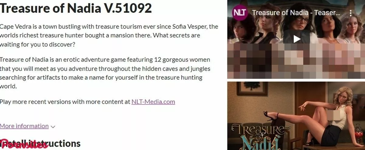 If you simply type in Treasure of Nadia into your browser, the link will lead you to the main page of the NLT's game! There, you can see some important info, such as a few words about the latest update, Instal instructions (if you have WinRar, you just download the game and install it with one click, if not, download the WinRar first), download options, and development log (you can see history of updates here). When it comes to downloading, you will see Download buttons for Windows, Linux, Mac, Android! That means Treasure of Nadia is compatible with every device and you can have fun no matter what OS you're using! In the end, you can see some comments from the users, and find something useful there!In the end, Treasure of Nadia is an awesome Free porn game!