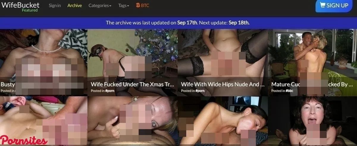 Like mentioned, there is a massive collection of video and photosets which appear to feature chicks who are around 30+. Whether they are real wives or having sex with their real husbands is hard to tell. But this is amateur made-at-home content with loads of scenes from POV cameras set up on tripods, wives posing nude, flashing in public, masturbating, loads of blowjobs and hardcore couple fucking among others. Some of the videos last up to 20 minutes while others are short 2-minute flicks that may include some dirty talk before ending with a money shot. The videos are shot in all manner of places, including bedrooms and living rooms. Some are quite messy and may sometimes include TV sounds in the background. There is plenty of action to look forward to, and lovers of the amateur genre will be impressed with the collection. WifeBucket also looks out other amateur home porn and shares it here. Clips have titles such as 'Hotwife gets fucked,' 'The Road to Self-Pleasure,' and 'Mature wife swallows.' It's important to note that we are not looking at standard studio scenes, and quality is not always excellent. Sometimes it's a bit grainy and rough, but then these are home videos sometimes shot in poor lighting, so that's to be expected. On the other hand, some have better quality as long as the user refrains from going fullscreen. The videos are available for both streaming and download, mostly at 360p. The quality aside, the knowledge that the atrocities may be taking place next door adds an intrigue that's hard to ignore. It's almost as if someone left their drapes open for voyeurs to peep in and have a taste of the exhibitionist nature of ordinary, everyday couples. There is plenty of outdoor sex, and a walk in the park may result in deep penetrations and moans of pleasure. These amateurs are clearly not inhibited, and viewers will appreciate their boldness and fornicating freedom. Loads of interracial scenes featuring naughty housewives being banged by black dudes have also been thrown around for good measure. The women will go for gang-banging good times, receiving cumshots on their faces, boobs, belly, ass, and plenty of creampies. The content may be amateur, but this is far from the filming of Saturday night sex between old couples. It appears like these couples live out their naughty fantasies and dream the moment the cameras are set rolling.Thousands of amateur photosets